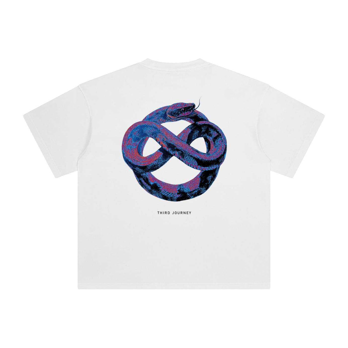 This piece is an oath to yourself. It's a reminder that we are woven into sacred cycles. The Ouroboros marks the eternal dance of death and rebirth, the spiral of growth, the unseen rhythm beneath it all. You are not stuck. You are shedding. You are not lost. You are becoming. Each chapter is a portal. Each ending, a return. You are the alchemist, the artist, the ever-evolving self. Break the loop. Write the next verse.